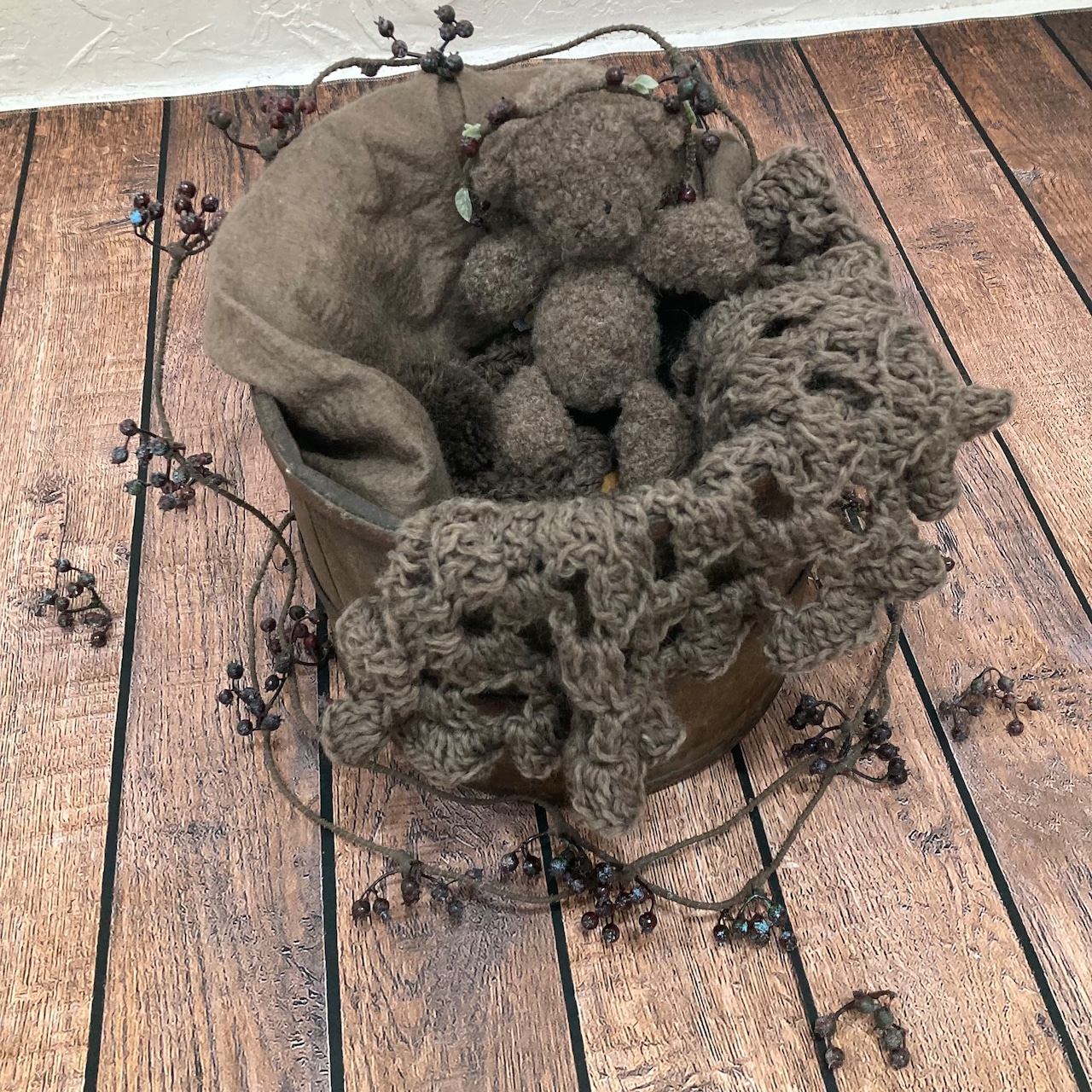コットンのモスグリーンリボンで巻き上げをしている丈夫な作りになっています