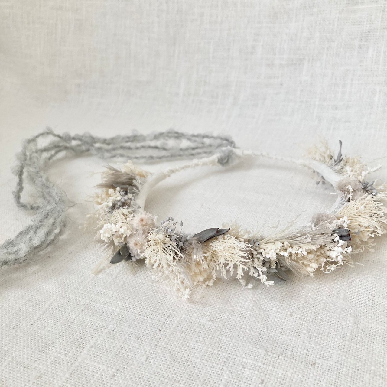 ♢material :プリザーブドフラワー(カスミソウ、モリソニア、ブベッセンス、プルームリード、カスピア、ストーべ)ドライフラワー(イモーテル)ワイヤー、フローラテープ、コットンリボン、ウールリボン