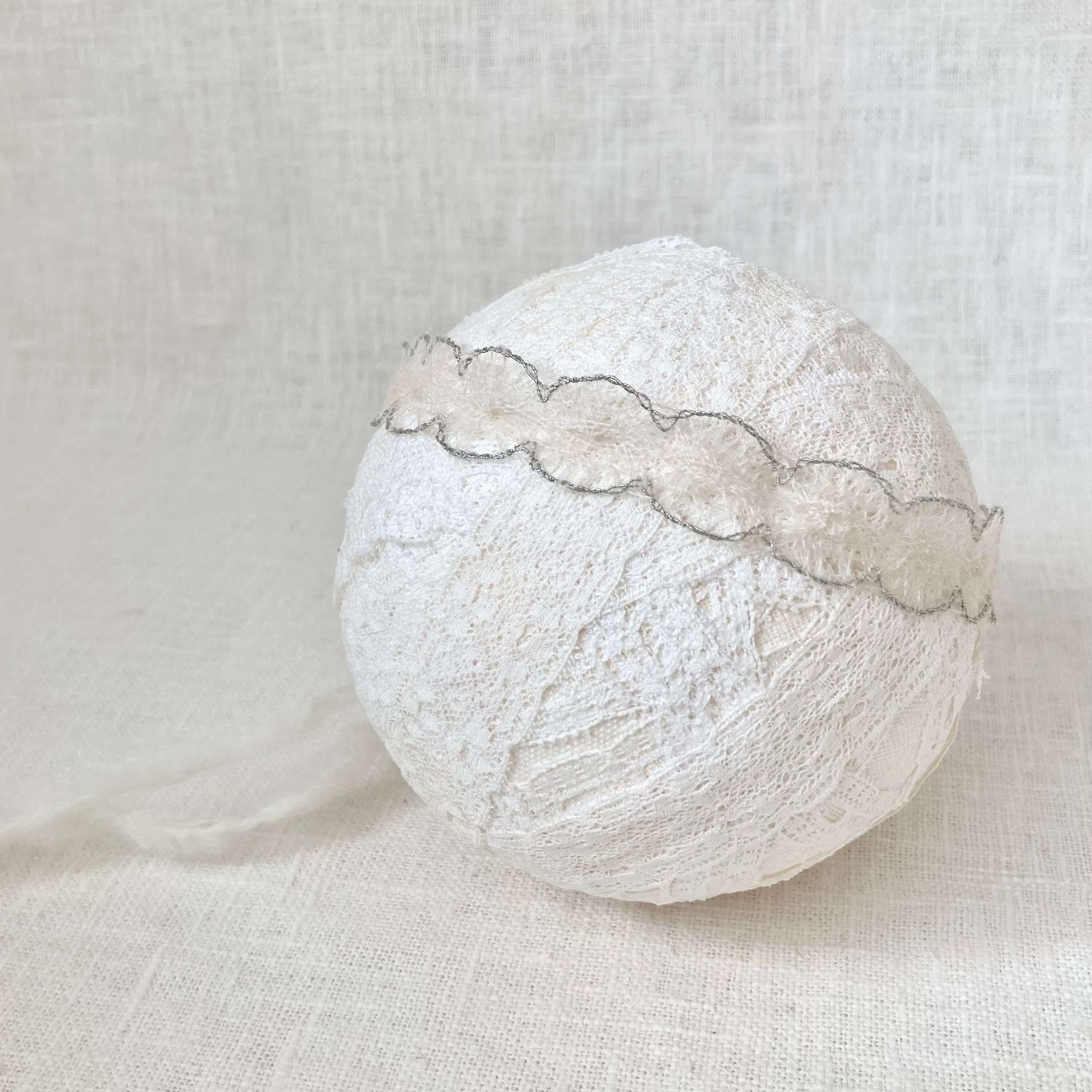 透けるように繊細でやわらかいモヘア糸で作られたレースのタイバック